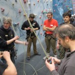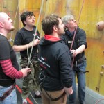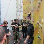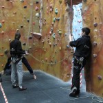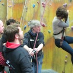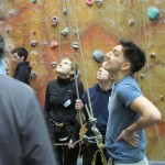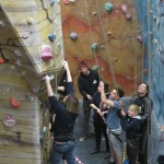 Fubra go team building up a (fake) rock face.